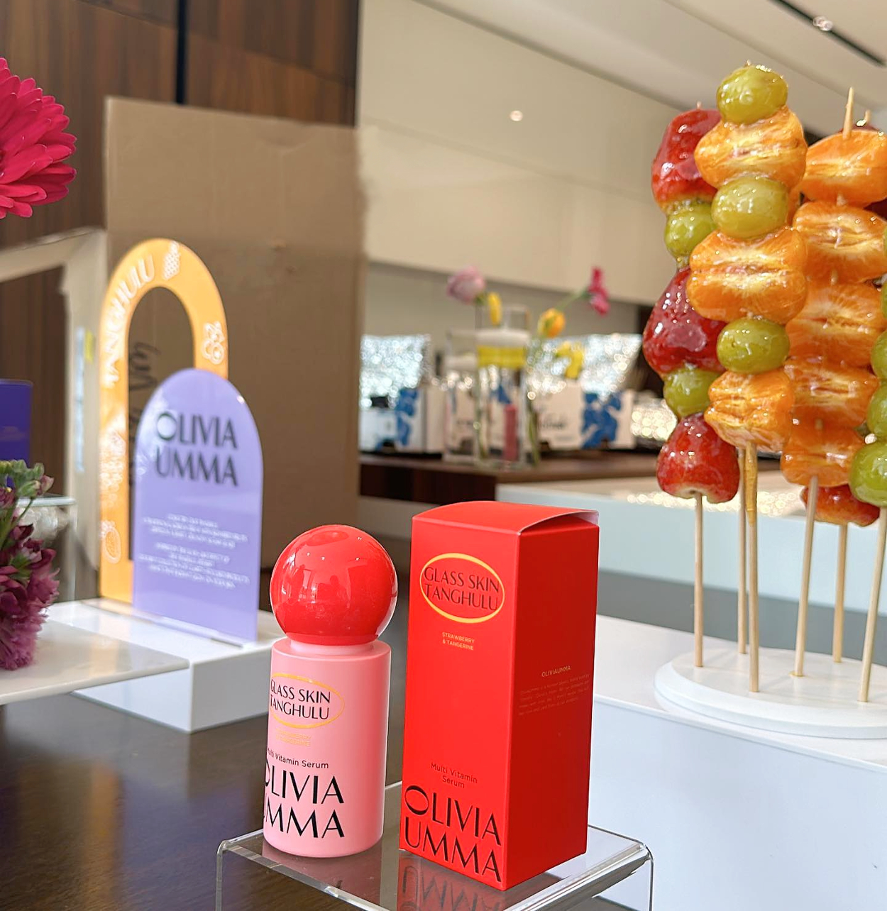 OliviaUmma‘s signature line is called Glass Skin Tanghulu, which aims to provide a “glass skin” look inspired by the shiny appearance of the popular Asian sugar-coated fruit snack tanghulu.